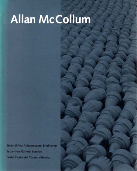 McCollum, Allan: Allan McCollum. Stedelijk Van Abbemuseum, Eindhoven, 16.9.-12.11.1989. Serpentine Gallery, London, 21.3.-29.4.1990. IVAM Centre del Carme, Valencia, 22.5.-29.7.1990. Erste Auflage. Eindhoven / London / Valencia. Stedelijk Museum / Serpentine Gallery / IVAM Centre del Carme. 1989. 25,1 x 20,1 cm. 64 S. Illustrierter OKarton. Rücken wenig aufgehellt, sonst gutes bis sehr gutes Exemplar. Durchgehend mit meist farbigen Abbildungen versehen. Texte in spanischer Sprache. Katalog zur gleichnamigen Ausstellung des amerikanischen Künstlers im IVAM Centre del Carme in Valencia, vom 22. Mai bis zum 29. Juli 1990.