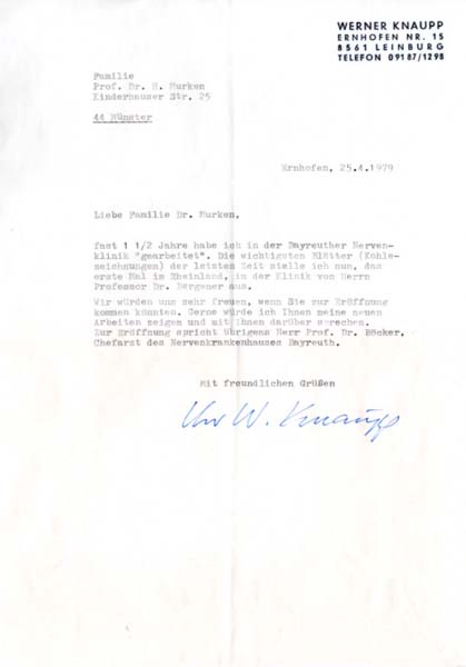 Knaupp, Maschinenschriftliches Anschreiben.