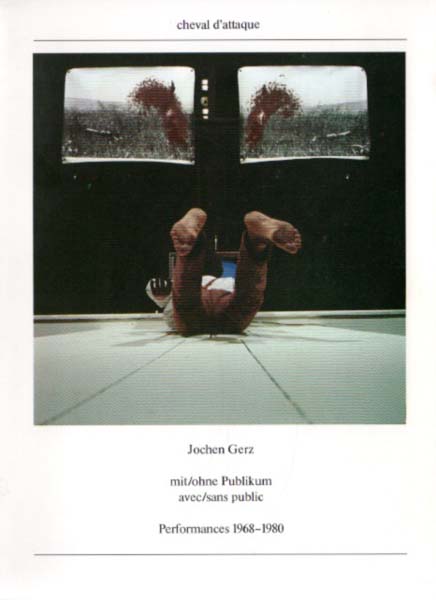 Gerz, Jochen: mit / ohne Publikum – avec / sans public. Performances 1968 – 1980. Kunsthalle Bielefeld, cheval d´attaque 1981. Erste Auflage. Bielefeld. Kunsthalle. 1981. 22 x 16 cm. 126 S., 1 Blatt. Illustrierter OKarton. Gutes Exemplar. Durchgehend mit Abbildungen versehen. Text in Französisch und Deutsch. Von Gerz auf dem Vortitel mit einem handschriftlichen Gruß nebst Datum und Signatur in schwarzem Faserschreiber versehen.