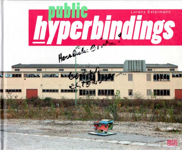 Estermann, Lorenz – Alexander Sairally (Herausgeber): public hyperbindings. Erste Auflage. Ostfildern. Hatje Cantz Verlag. 2010. 24 x 29 cm. 101 S. Illustrierter OPappband. Neubuch (originalverschweißt). Die Signatur etwas verwischt. Durchgehend mit meist farbigen Abbildungen versehen. Katalogpublikation anlässlich der Ausstellung „Lorenz Estermann – Public Hyperbindings“ in der Galerie Stefan Röpke, Köln, vom 12. März bis zum 16. April 2010. Vom Künstler auf der Verpackungsfolie recto in schwarzem Filzstift signiert.