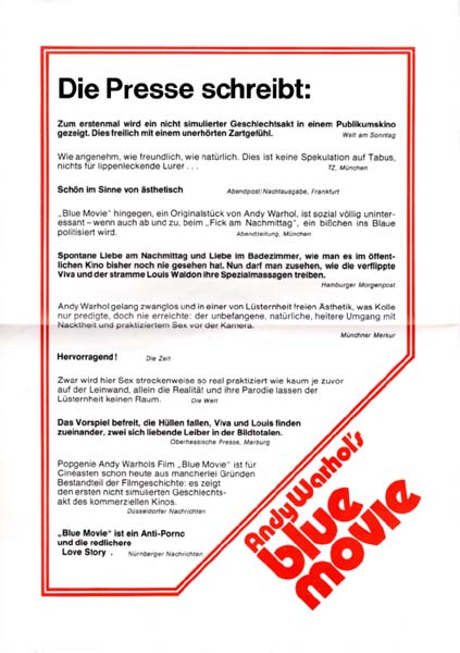 (Warhol, Andy Warhol's "Blue Movie". Ein Farbfilm. Verleih: Constantin Film.