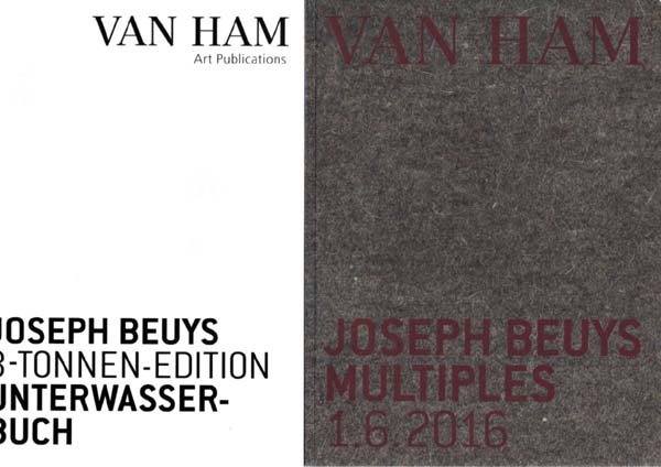 Beuys, Joseph: Joseph Beuys. Multiples. 374. Auktion, 1. Juni 2016. Van Ham Kunstauktionen. Erste Auflage. 2 Bände. Köln. Van Ham Kunstauktionen. 2016. 29,6 x 22,6 cm; 29,6 x 21 cm. 175 S.; 60 S., [3] unpaginierte Blätter. Illustrierter OKarton; klammergeheftete OBroschur. Sehr gutes Exemplar. Durchgehend mit meist farbigen Abbildungen versehen. Verzeichnet 182 Katalognummern, alle abgebildet. Beiliegend der Sonderdruck für die 3-Tonnen-Edition (Los Nr. 1182 im Rahmen der Auktion).