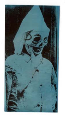 Dahn, Walter – Schmalen, Norbert (Herausgeber): LESEZEICHEN 7. Selbstporträt mit Totenmaske. Hachenburg. Lesezeichen-Edition Norbert Schmalen. 1998. 12,6 x 6,5 cm. OPappschachtel. Sehr gutes Exemplar. Von Hand kolorierte Fotografie auf Fotopapier, hier blau eingefärbt. Verso vom Künstler nummeriert 91 / 100, signiert und datiert. Aus der vom ehemaligen Leister des Kunstvereins der Region Heinsberg und Verlegers Norbert Schmalen, von 1997 bis 2013 in 17 Editionen, davon auch zwei doppelte Jahrgänge, herausgegebenen Edition LESEZEICHEN. Beteiligte Künstler waren u. a Thomas Virnich, Hans-Peter Feldmann, Fritz Schwegler, Walter Dahn, Ingo Ronkholz, Rupprecht Geigerund Franz Erhard Walther.