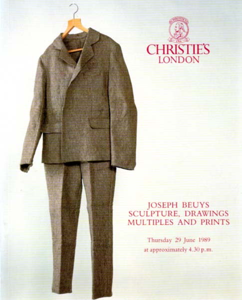 Beuys, Joseph: Sculpture, Drawings, Multiples and Prints. Which will be sold at Christie´s Great Rooms on Thursday 28 June 1989. London. Christie, Manson & Woods LTD. 1989. 25 x 20 cm. 127 S. Illustrierter, glanzkaschierter OKarton. Kleiner Eintrag auf Innendeckel vorne, sonst sehr gutes Exemplar. Durchgehend mit meist farbigen Abbildungen versehen. Eine der ersten großen internationalen Beuys-Auktionen nach seinem Tod mit 102 Losen. Texte in englischer Sprache. Beiliegend die Ergebnisliste.