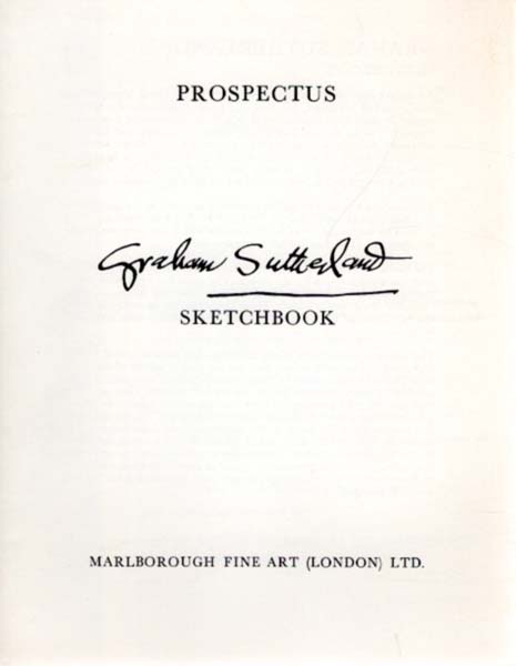 Sutherland, Graham: Sketchbook. Prospectus. Marlborough Fine Art (London) Ltd. [Klappkarte]. London. Marlborough Fine Art. [1973]. 23 x 17,8 cm. 2 Blatt. OKartonfolder. Papierbedingt etwas nachgedunkelt und leicht lichtrandig. Montierung der farbigen Beispielabbildung gelöst. Sonst gutes Exemplar. Publikationsankündigung der Londoner Galerie Marlborough Fine Art aus dem Jahre 1973 zu einer bibliophilen Edition eines Skizzenbuches des britischen Künstlers Graham Sutherland. Innen eine montierte, farbige Abbildung einer Beispielseite der Veröffentlichung.