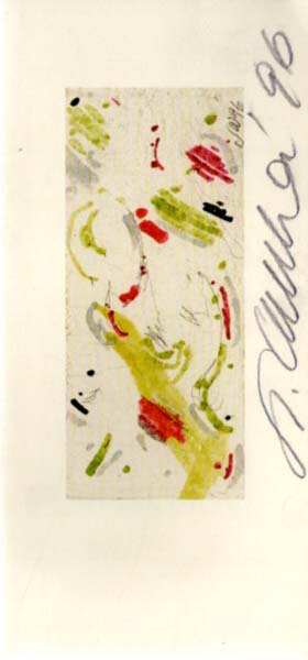 Wewerka, Stefan: „Malereien auf Seide – dazu Skizzen in Bleistift und Aquarell – auch bemalte Mode“. Eröffnung der Ausstellung Donnerstag, 28. November 1996 – 19 Uhr [Einladungsklappkarte]. Köln. Galerie Smend. 1996. 9,8 x 20,9 cm. 1 Blatt. Sehr gutes Exemplar. Einladungsklappkarte der Kölner Galerie Smend aus dem Jahre 1996 zu einer Einzelausstellung Stefan Wewerkas. Recto mit einer farbigen Abbildung nach einer Arbeit des Künstlers. Auf dem Vorderdeckel vom Künstler in Bleistift signiert und datiert „96“.