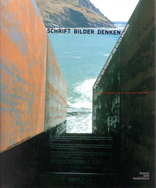 Schöttker, Detlev (Herausgeber): Schrift – Bilder – Denken. Walter Benjamin und die Künste. Formen des Gedenkens in der zeitgenössischen Kunst. Peter Herbstreuth et alii. Erste Auflage. Berlin. Haus am Waldsee e. V. 2004. 28 x 23 cm. 263 S. Illustrierter OKlappkarton. Rücken etwas aufgehellt. Sonst gutes bis sehr gutes Exemplar. Durchgehend mit meist farbigen Abbildungen versehen. Katalogpublikation zur Ausstellung „Schrift, Bilder, Denken – Walter Benjamin und die Kunst der Gegenwart“ im Berliner Haus am Waldsee e. V., vom 29. Oktober 2004 bis zum 31. Januar 2005. Texte in deutscher Sprache.