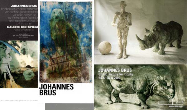 Brus, Johannes: Konvolut von 11 Einladungskarten und Klappkarten. Erste Auflage. Diverse Orte. Diverse Verlage. 1975 – 2018. Diverse Formate. Ca. 12 Blatt. Karten zumeiste postalisch gelaufen und minimal gebrauchsspurig. Sonst gute Exemplare. Kleines Konvolut von 11 Einladungskarten und Klappkarten zu Ausstellungen des deutschen Künstlers Johannes Brus (*1942) aus den Jahre 1975 bis 2018. Die Karte „Fotoarbeiten“ bei Gugu Ernesto (1985) ist doppelt vorhanden. Recto zumeist Abbildungen nach Arbeiten des Künstlers.