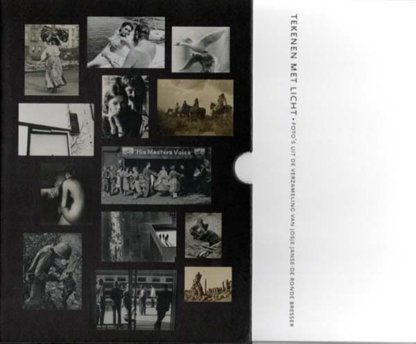 Janse-de Ronde Bresser, Josje (Herausgeberin): Foto’s uit de verzameling van Josje Janse-de Ronde Bresser. Erste Auflage. o. O. Selbstverlag / Zwaan Printmedia. 2016. 24 x 17,2 cm. [17] dreiteilige Klappkarten. Illustrierter OPappschuber. Sehr gutes Exemplar. Durchgehend mit schwarz-weißen bzw. sepiafarbenen Abbildungen versehen. Aufwendiger Privatdruck der bedeutenden Fotosammlung von Josje Janse-de Ronde Bresser. Die einzelnen Klappkarten sind beidseitig bedruckt und zeigen meist sechs Bilder, die aufgestellt werden können. Zu den in der Sammlung vertretenen Künstlern zählen Bill Brandt, Alfred Stieglitz, Robert Doisneau, André Kertesz, Manuel Alvarez Bravo, Robert Capa, Brassai, Weegee, Ed van der Elsken, Albert Renger Patzsch, Andreas Feininger, René Burri, Elliot Erwitt, Koen Wessing, Henry Cartier-Bresson, Edward Muybridge, Edward Weston, Willem Diepraam und Sebastiao Salgado. Buchentwurf: Volken Beck. Beiliegend eine Klappkarte mit einem signierten, 23-zeiligen Anschreiben der Sammlerin an eine befreundete deutsche Kunsthistorikerin. Selten!