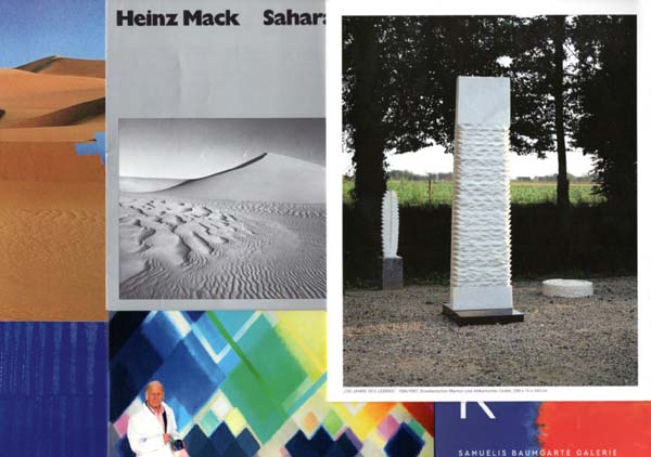 Mack, Heinz: Konvolut von 11 Einladungsklappkarten und Ephemera. Erste Auflage. Diverse Orte. Diverse Verlage. 1975 – 2023. Diverse Formate. Ca. 15 Blatt. Wenige winzige Anstreichungen auf einer Karte. Sonst gute bis sehr gute Exemplare. Konvolut von 11 Einladungsklappkarten und Ephemera zu Einzelausstellungen, Projekten und Publikationen von Heinz Mack aus den Jahren 1975 bis 2024. Dabei eine Editionsankündigung des Sahara-Projektes (o. J. [1975]). Karten zumeist mit farbigen Abbildungen von Arbeiten des Zero-Künstlers.