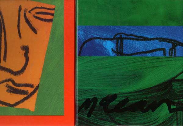 McLean, Bruce – Jeremy Hunt (Herausgeber): Prints 1978 – 1991. Erste Auflage. London. Jeremy Hunt Fine Art. 1992. 29 x 24,7 cm. 140 S.; 1 Blatt. Illustrierter, glanzkaschierter OPappband mit illustriertem, glanzkaschiertem OUmschlag in illustriertem, glanzkaschiertem OStülpdeckelpappkarton. Sehr gutes Exemplar. Durchgehend mit meist farbigen Abbildungen versehen. Auf insgesamt 233 signierte Exemplare limitierte Edition des Catalogue Raisonné der Grafiken von 1978 bis 1991 des schottischen Malers, Bildhauers und Performance-Künstlers Bruce McLean (Glasgow *1944) aus dem Jahre 1992, herausgegeben von Jeremy Hunt Fine Art in London. Es wurden 200 signierte und nummerierte Exemplar gedruckt, zudem 20 römisch nummerierte artist’s proofs und 13 signierte Belegexemplare. Frontispiz und Kolophon mit einem handgearbeiteten Kartoffeldruck des Künstlers, das Frontispiz zusätzlich mit einer Stempelung des Künstlers sowie einem Acrylfleck in grüner Farbe. Im Kolophon in Bleistift handsigniert vom Künstler und als „Proof“ bezeichnet, d. h. eines von nur 13 Exemplaren außerhalb der Nummerierung. Die grafische Arbeit auf dem Frontispiz geschützt durch ein vorgebundenes Seidenhemdchen. Selten!