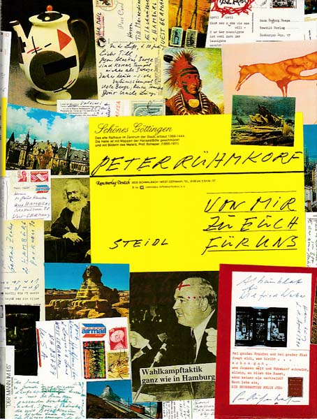 Rühmkorf, Peter: Von Miir Zu Euch Für Uns. Erste Auflage. Göttingen. Steidl. 1999. 28,5 x 21,5 cm. 221 S., 1 Blatt. OLeinen mit illustriertem OUmschlag. Sehr gutes Exemplar. Gesammelte Bemerkungen des Schriftstellers auf Postalien (Postkarten, illustrierte Briefe u.ä.). Durchgehend illustriert und mit eigenhändiger Signatur von Peter Rühmkorf auf dem Titelblatt.