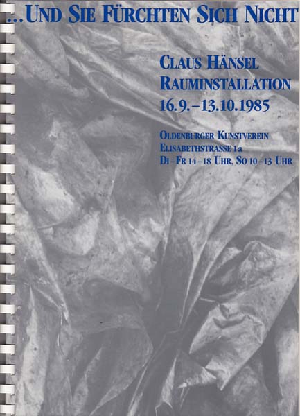 Hänsel, Claus: … und sie fürchten sich nicht. Rauminstallation 16. 9. – 13. 10. 1985. Auflage 200 Exemplare. Oldenburg. Oldenburger Kunstverein. 1985. 30 x 21,5 cm. 24 unpaginierte S. OKarton mit Spiralbindung und Klarsichtumschlag. Einbandkanten mit minimalsten Bereibungen. Sonst sehr gutes Exemplar. Durchgehend mit ganzseitigen Abbildungen versehen. Nummeriert 170 von 200, hier ohne Signatur. Mit einem lose eingehefteten signierten Siebdruck, (1/41) sowie einer beiliegenden illustrierten Karte als Zeichnung.