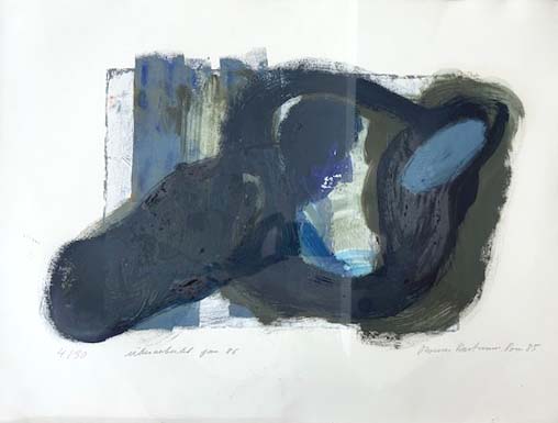 Hartmann, Thomas: Überarbeitung Jan. 86. 1 Blatt. Sehr gutes Exemplar. Acryl und Gouache auf Büttenkarton, nummeriert 4 / 30, signiert, datiert Rom 1985. Blatt 52 x 72 cm, gerahmt in einfacher Museumsleiste unter Glas, 56 x 76 cm. Übermalung aus einer Serie von 30 Unikaten.