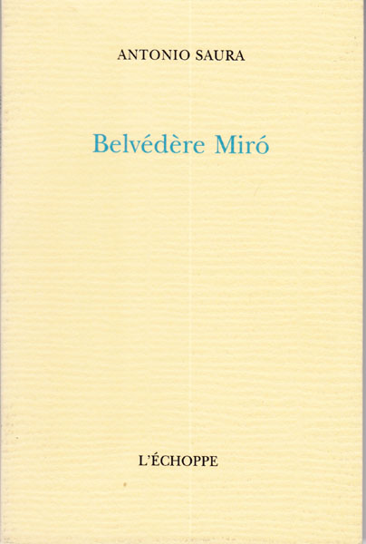 Saura, Antonio: Belvedere Miró. Auflage 980 Exemplare. Paris. L’Échoppe. 1993. 18,5 x 12,5 cm. 49 S., 1 Blatt (unaufgeschnitten!) OKarton. Einband etwas nachgedunkelt. Sonst sehr gutes Exemplar. Mit einigen Illustrationen versehen. Text in französischer Sprache.