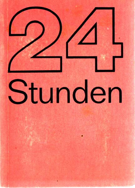 24 Stunden. Galerie Parnass, Samstag 5. Juni 1965, 0-24 Uhr, Wuppertal. (Joseph Beuys – Bazon Brock – Charlotte Moorman – N[am] June Paik – Eckart Rahn – Tomas Schmit – Wolf Vostell). Wuppertal. Galerie Parnass. 1965. 10,5 x 7,5 cm. [336 S.]. OKarton. Marginale Knitterungen am Rücken, Einband gering berieben und etwas aufgehellt. Gutes bis sehr gutes Exemplar. Begleitpublikation zum 24 Stunden Happening in der Galerie Parnass am 5. Juni 1965. Das legendäre Happening unter Beteiligung von Joseph Beuys, Bazon Brock, Ute Klophaus, Charlotte Moorman, Nam June Paik, Eckart Rahn und Tomas Schmit war eines der ersten großen Fluxus-Happenings. Enthält eine umfangreiche Fotodokumentation, teils zum ausklappen, von Ute Klophaus sowie im unbedruckten hinteren Drittel des Buches in den dafür ausgehöhlten Seiten ein Mehlsäckchen mit der Anweisung von Wolf Vostell: beschäftigen sie sich 24 stunden mit mehl. [Vgl. Kellein / Archiv Sohm; Fricke, Katalog 10, Nr.75].